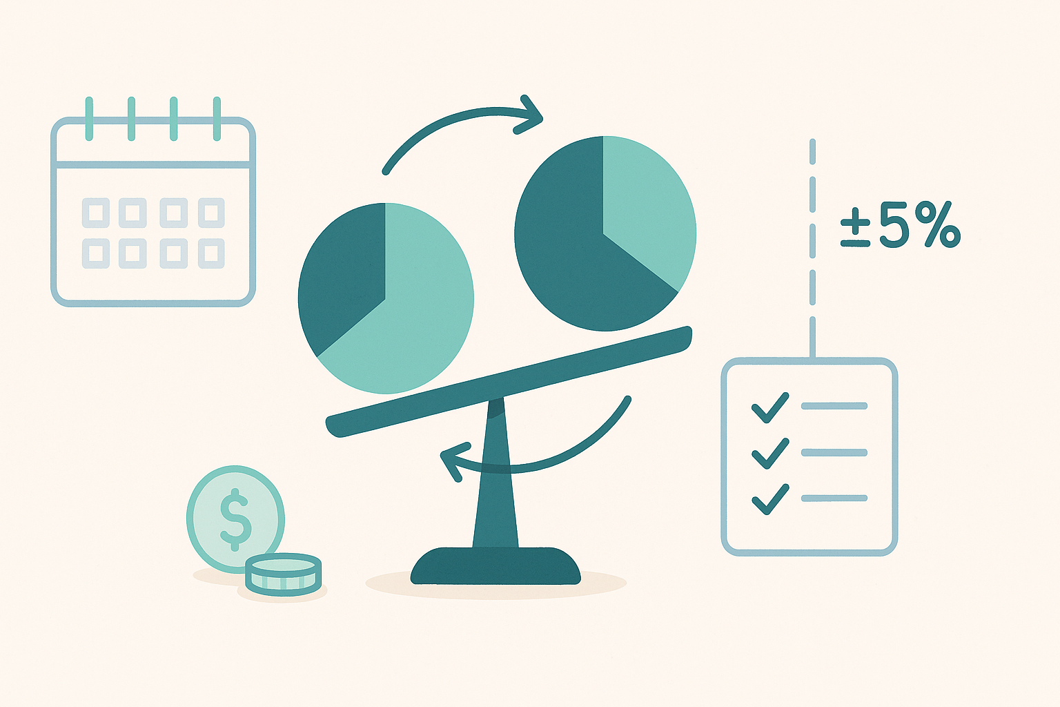 리밸런싱은 “언제, 얼마나, 무엇으로”라는 세 단어로 요약된다. 언제: 분기 마지막 영업일 16:00에 확인한다. 얼마나: 목표 비중에서 ±5%포인트를 초과한 자산만 조정하고, 초과분의 절반만 되돌린다.