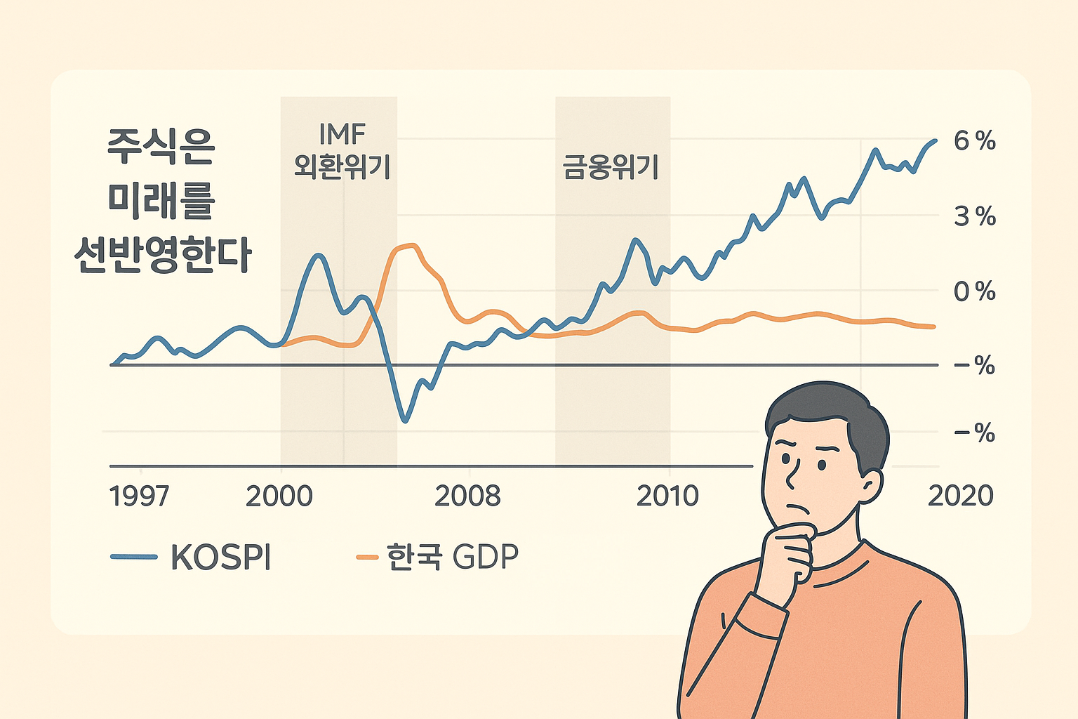 IMF 외환위기 이후의 코스피와 한국 경제성장률 그래프를 나란히 놓고 보면, 우리가 흔히 갖고 있는 몇 가지 단순한 생각들이 자연스럽게 깨집니다. “경제가 좋으면 주가도 오른다”라는 말은 절반만 맞습니다. 실제 데이터 속에서 주식시장은 늘 경제보다 빠르게 움직였고, 때로는 경제보다 훨씬 더 과하게 낙관적이거나 비관적이었습니다. IMF 때도, 글로벌 금융위기 때도, 실물경제가 최악일 때 시장은 이미 반등의 씨앗을 품고 있었습니다. 반대로 경제 지표가 좋아 보이는 시기에도, 시장은 이미 다음 조정을 준비하고 있는 경우가 많았습니다.